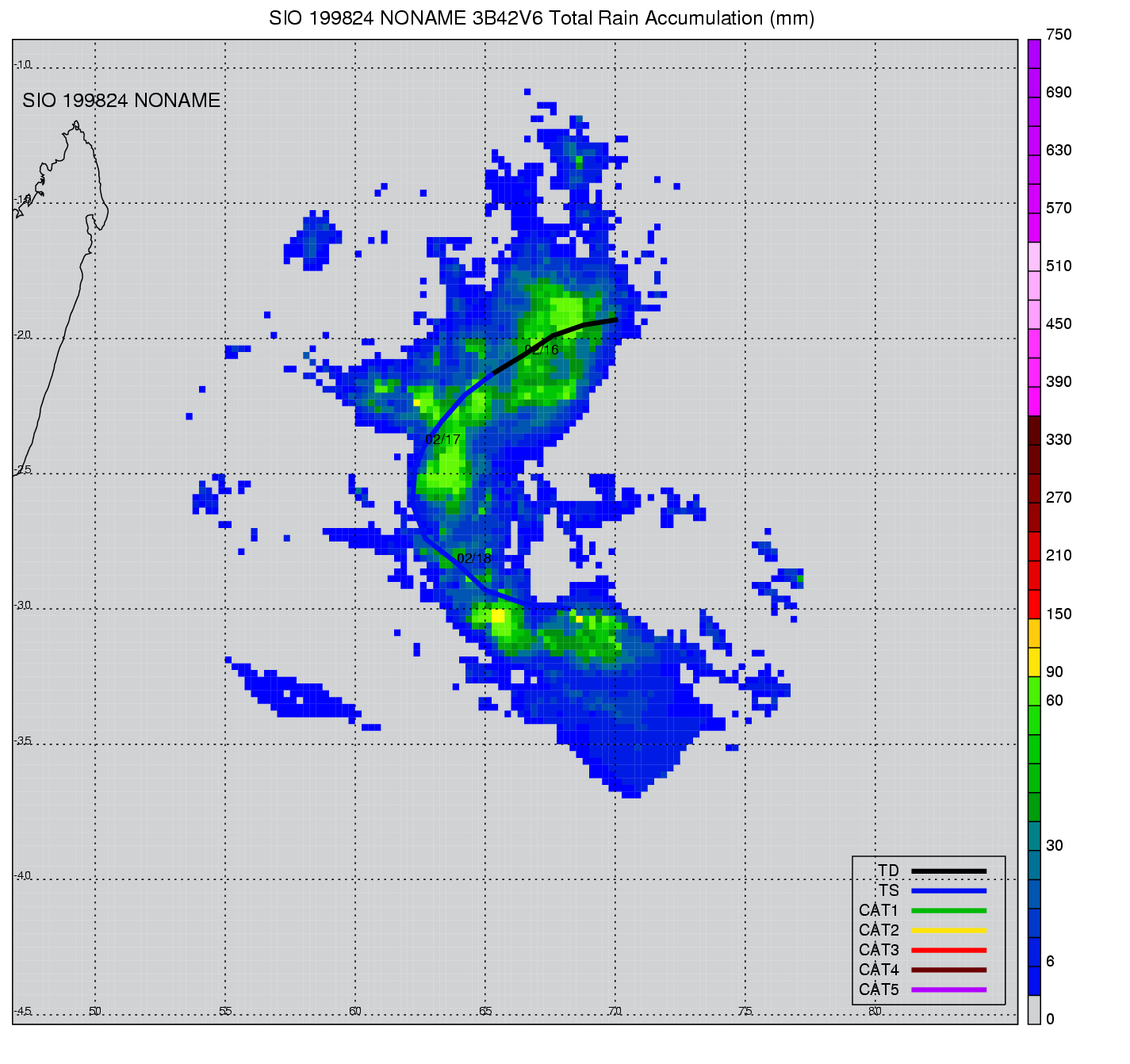 | 6 | 199822 | VICTOR | 19980205 - 19980218 | -9999999 | 90 | 23 | 199 | snapshots | rain accumulation |