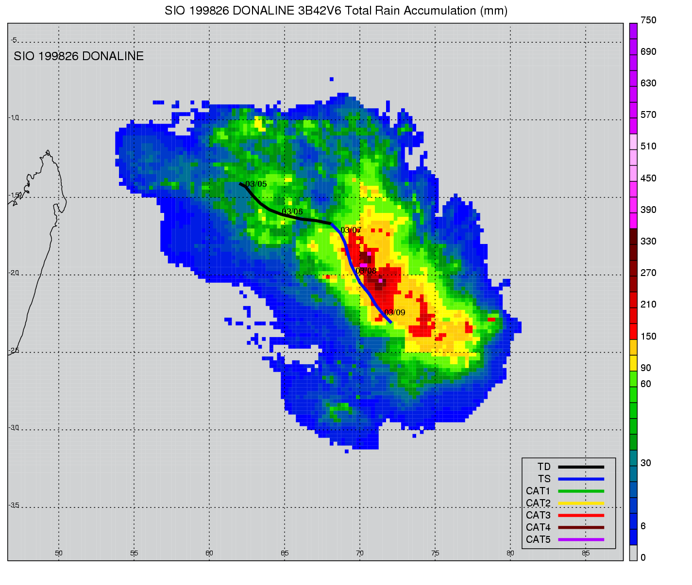 | 9 | 199826 | DONALINE | 19980305 - 19980309 | -9999999 | 55 | 8 | 73 | snapshots | rain accumulation |