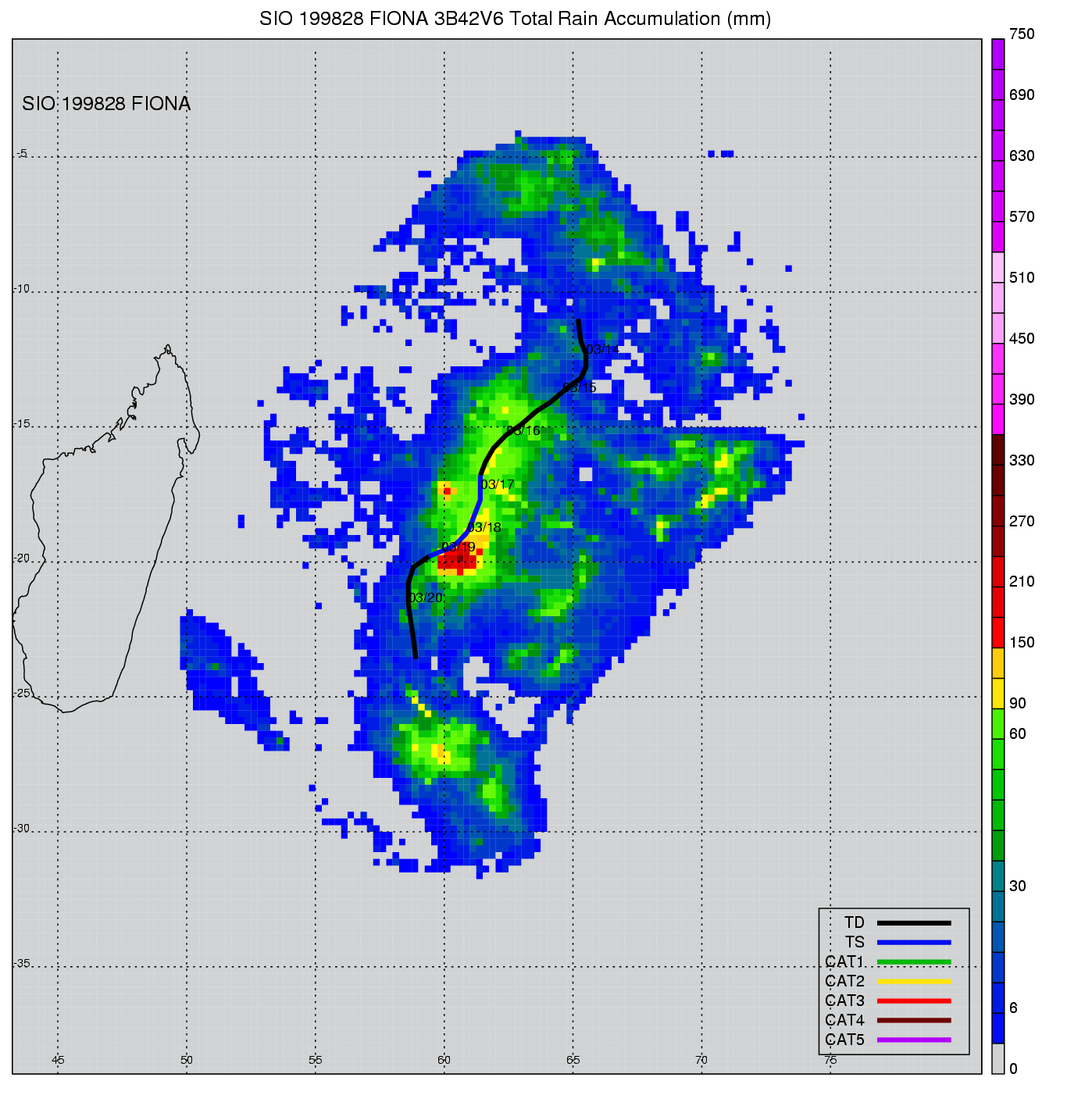| 11 | 199828 | FIONA | 19980314 - 19980319 | -9999999 | 35 | 11 | 86 | snapshots | rain accumulation |