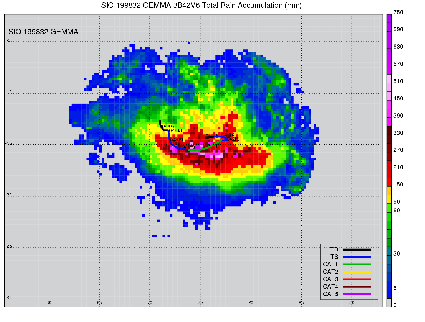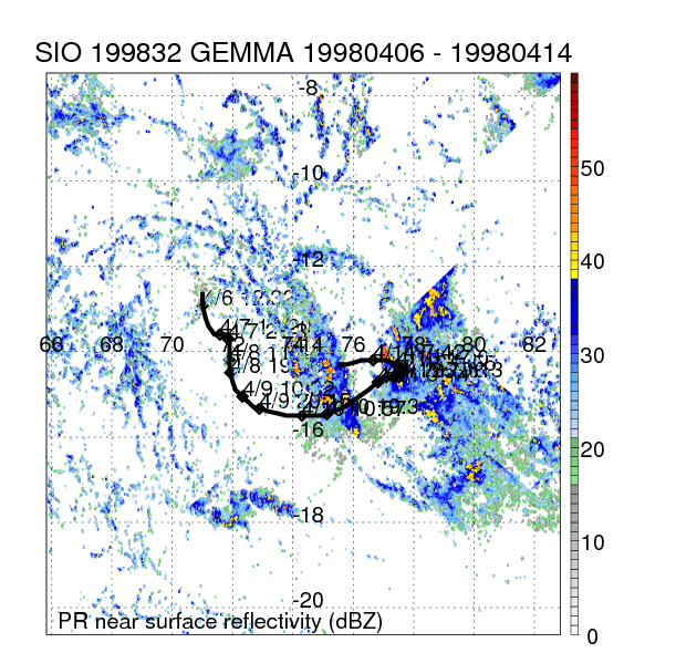 | 12 | 199832 | GEMMA | 19980406 - 19980414 | -9999999 | 70 | 17 | 182 | snapshots | rain accumulation |
