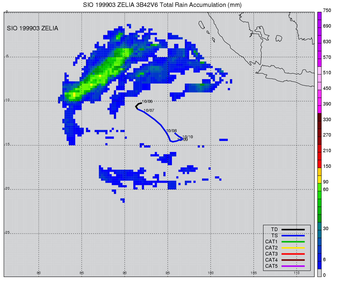 | 17 | 199903 | ZELIA | 19981006 - 19981010 | -9999999 | 45 | 8 | 64 | snapshots | rain accumulation |
