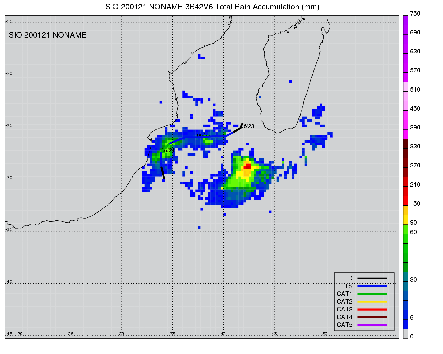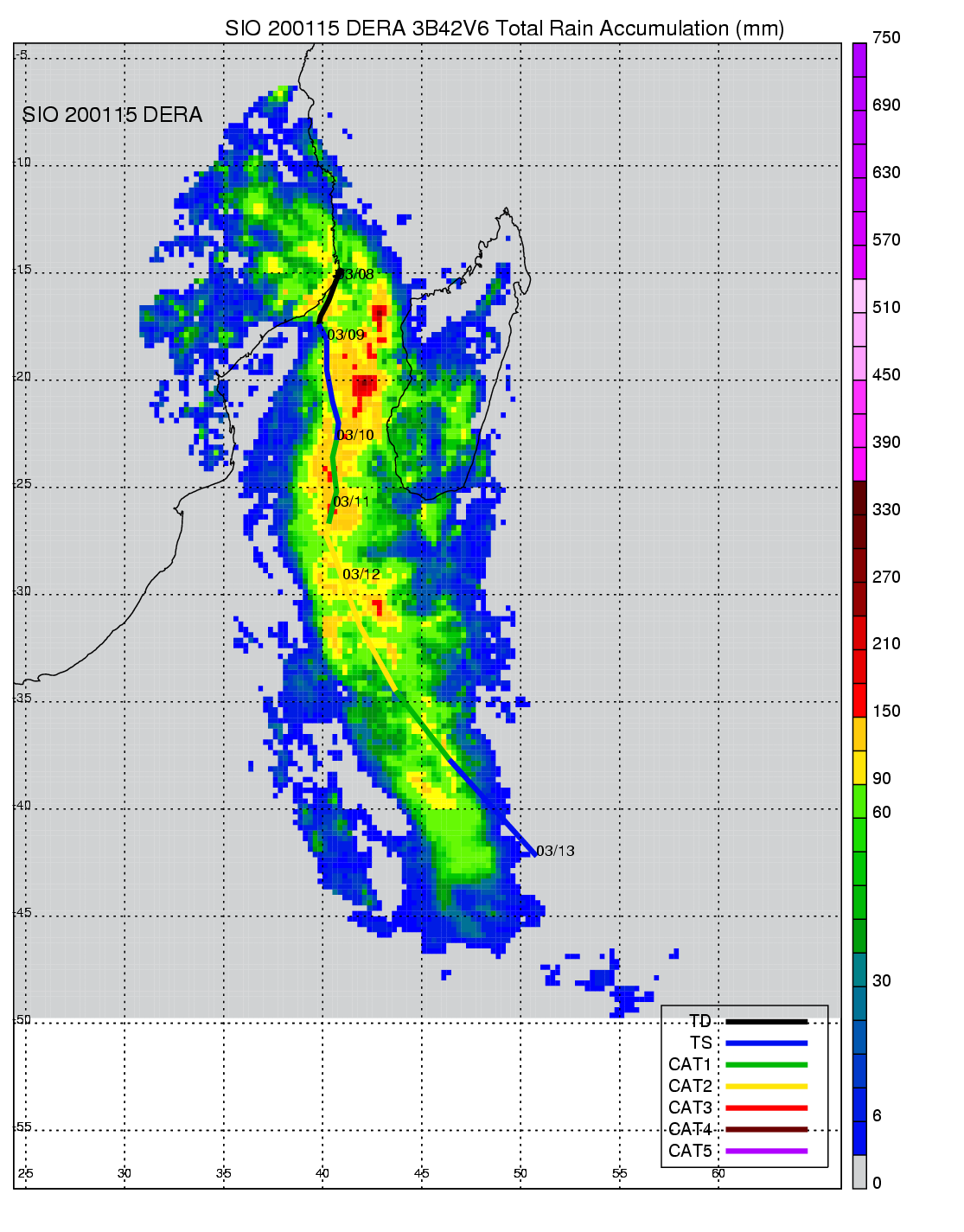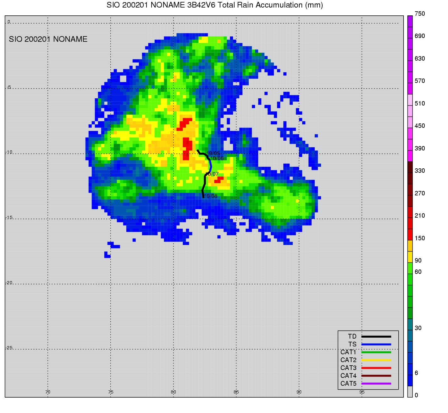 | 9 | 200118 | EVARISTE | 20010403 - 20010408 | -9999999 | 75 | 10 | 87 | snapshots | rain accumulation |