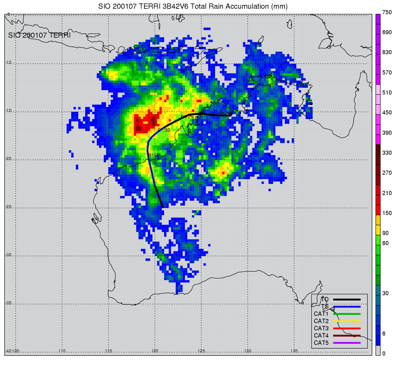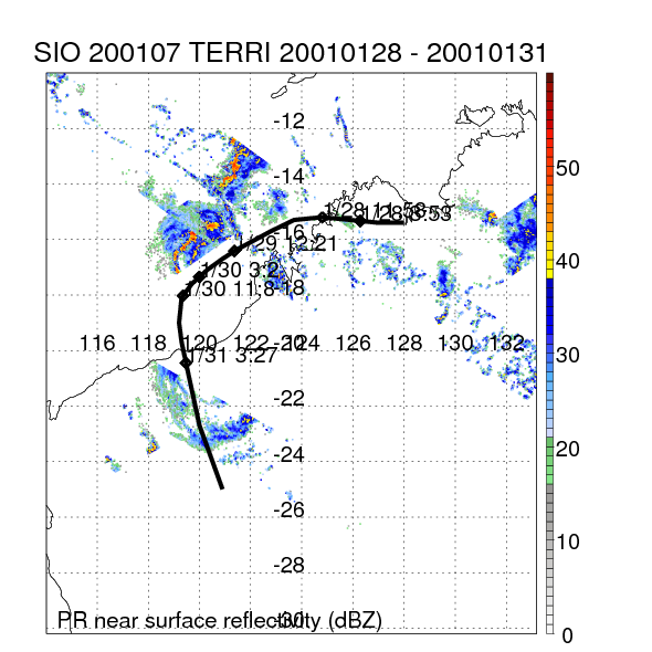 | 4 | 200107 | TERRI | 20010128 - 20010131 | -9999999 | 50 | 7 | 56 | snapshots | rain accumulation |