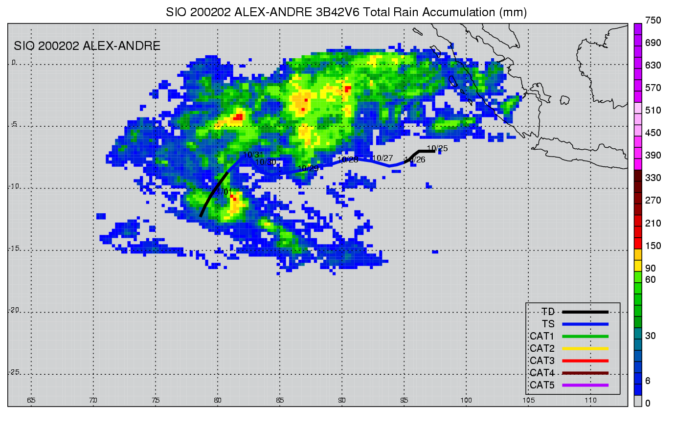 | 13 | 200202 | ALEX-ANDRE | 20011024 - 20011101 | 984 | 55 | 12 | 88 | snapshots | rain accumulation |