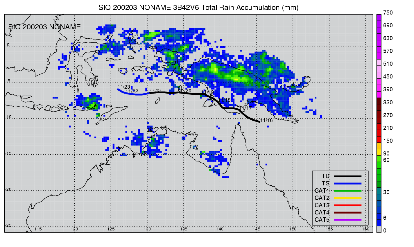 | 8 | 200117 | WALTER | 20010402 - 20010407 | -9999999 | 90 | 9 | 72 | snapshots | rain accumulation |
