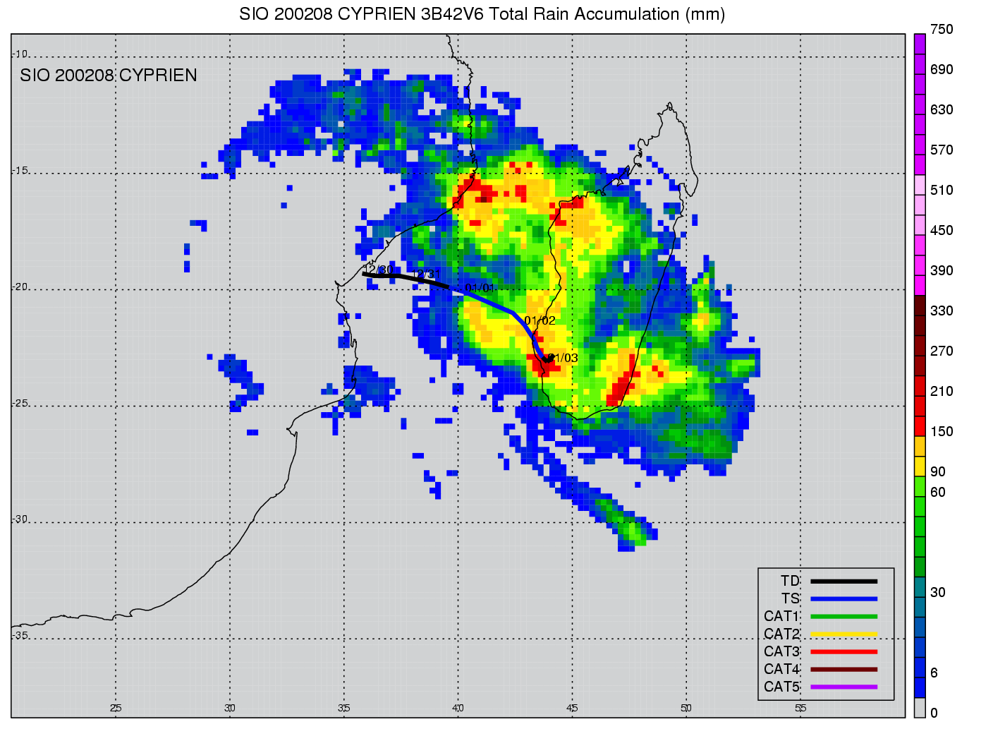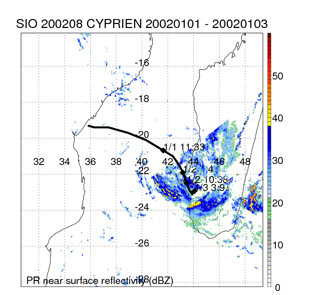 | 17 | 200208 | CYPRIEN | 20011230 - 20011231 | 987 | 50 | 4 | 45 | snapshots | rain accumulation |