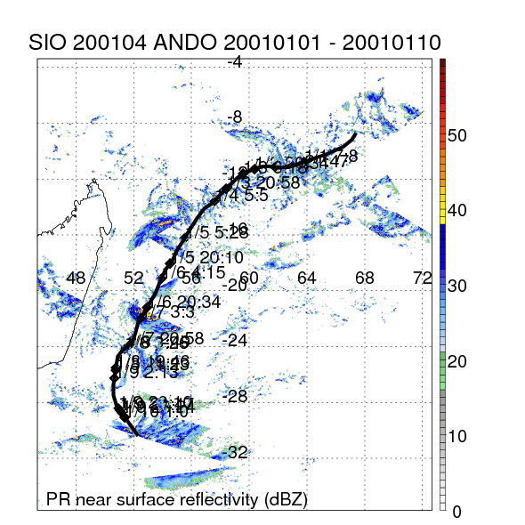 | 1 | 200104 | ANDO | 20010101 - 20010110 | -9999999 | 120 | 21 | 155 | snapshots | rain accumulation |