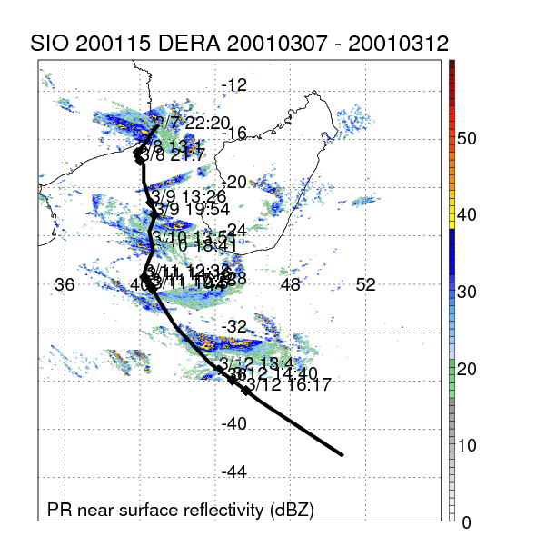 | 6 | 200115 | DERA | 20010307 - 20010312 | -9999999 | 90 | 14 | 83 | snapshots | rain accumulation |