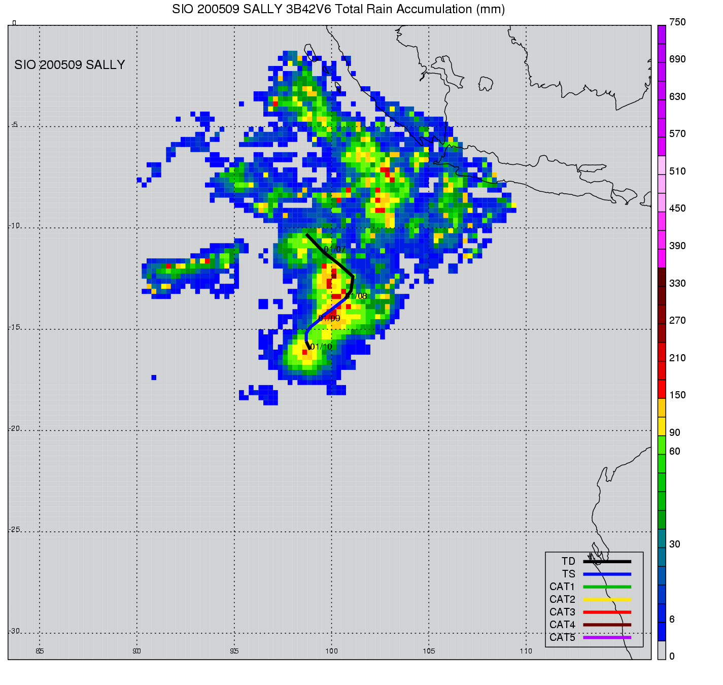 | 3 | 200509 | SALLY | 20050107 - 20050109 | 991 | 45 | 4 | 31 | snapshots | rain accumulation |