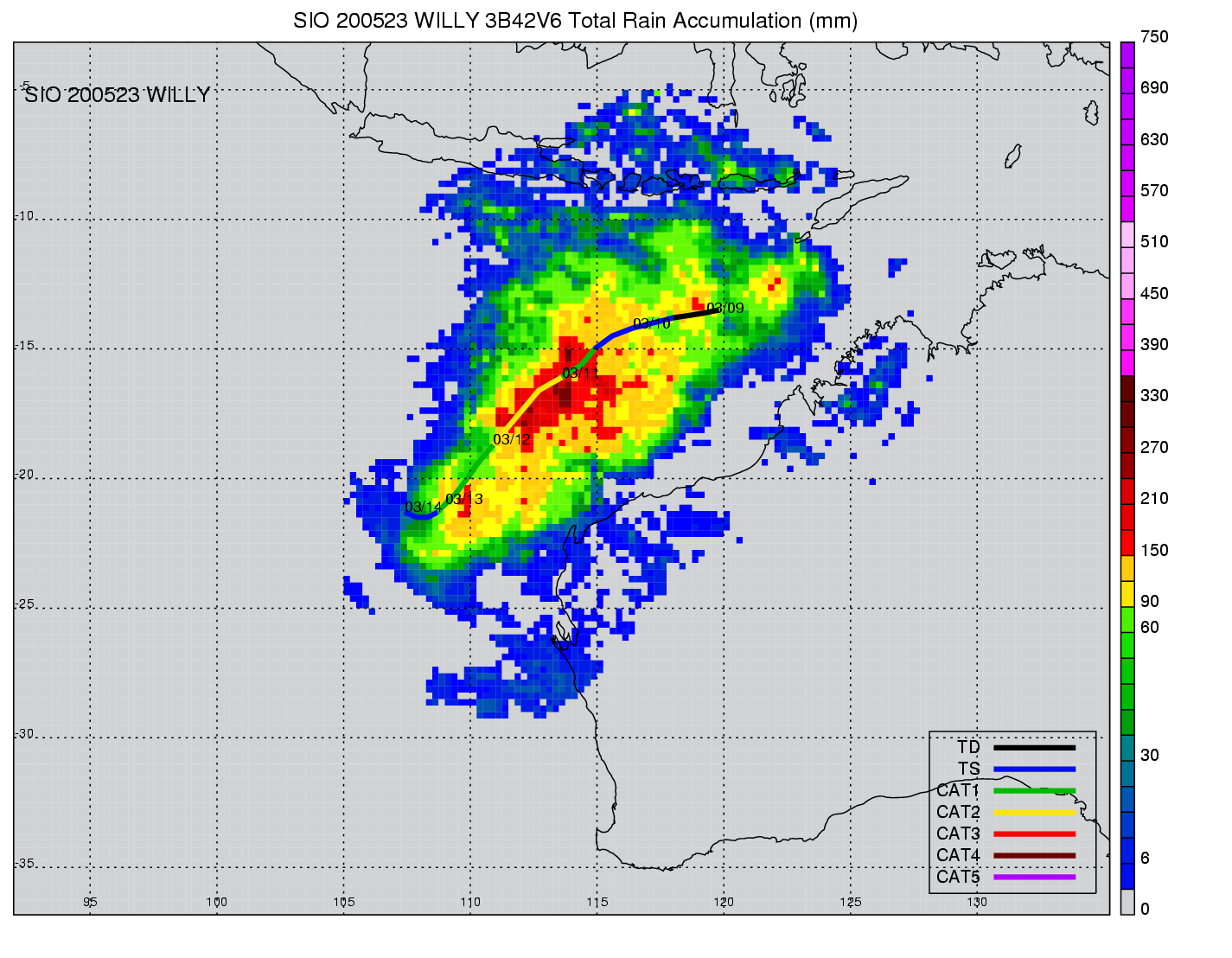 | 10 | 200523 | WILLY | 20050308 - 20050313 | 954 | 90 | 10 | 67 | snapshots | rain accumulation |