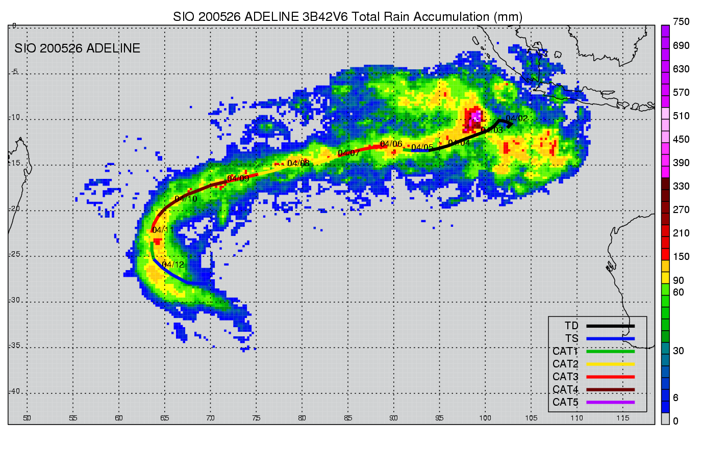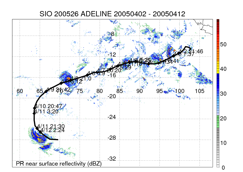 | 13 | 200526 | ADELINE | 20050402 - 20050412 | 916 | 125 | 17 | 107 | snapshots | rain accumulation |