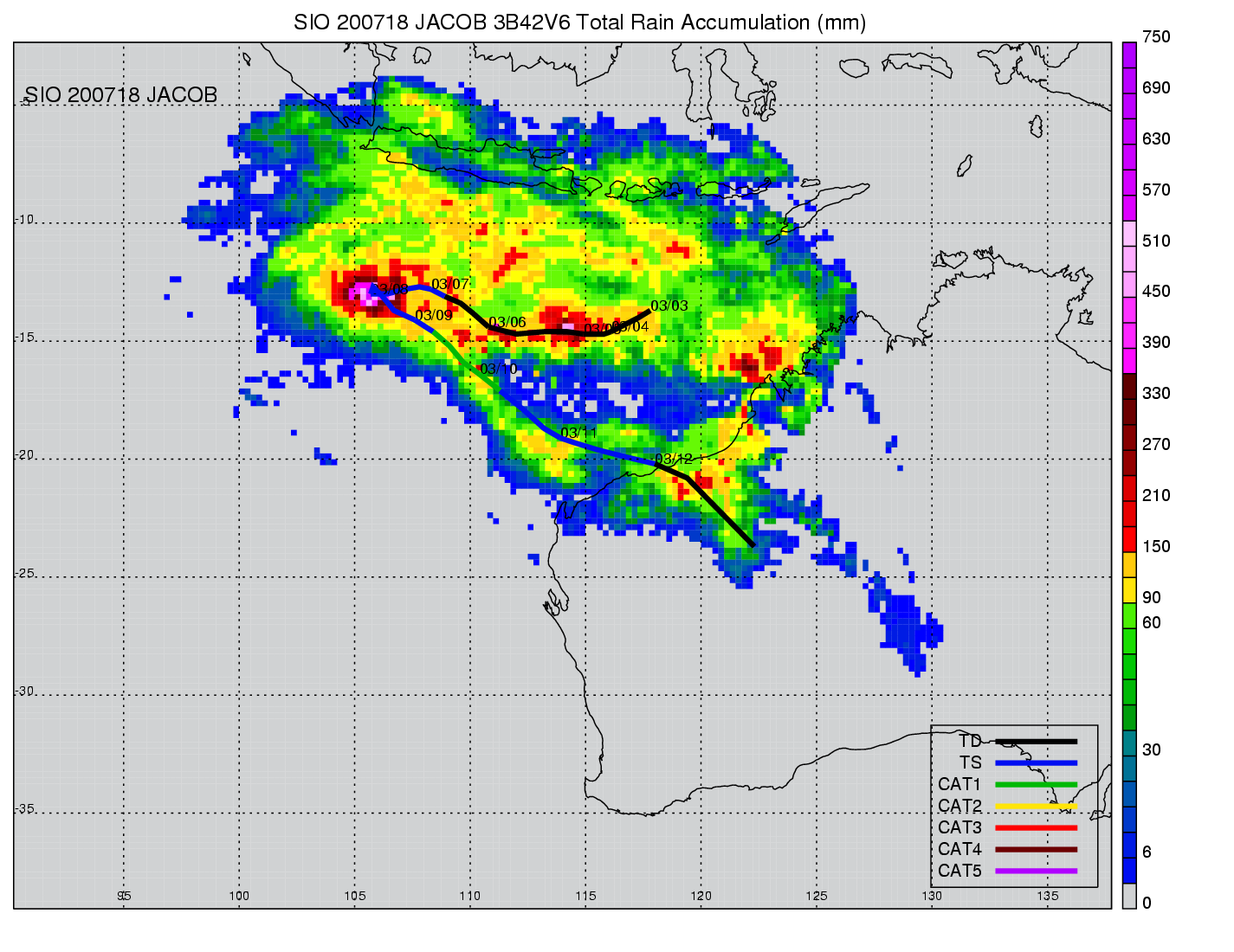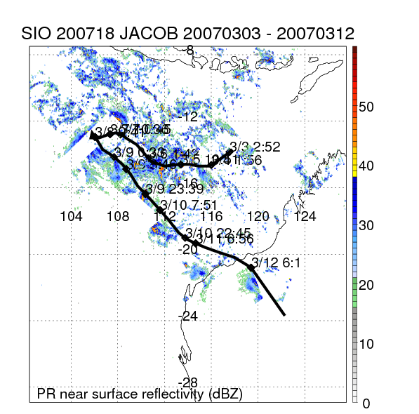 | 9 | 200718 | JACOB | 20070303 - 20070312 | 967 | 75 | 14 | 120 | snapshots | rain accumulation |