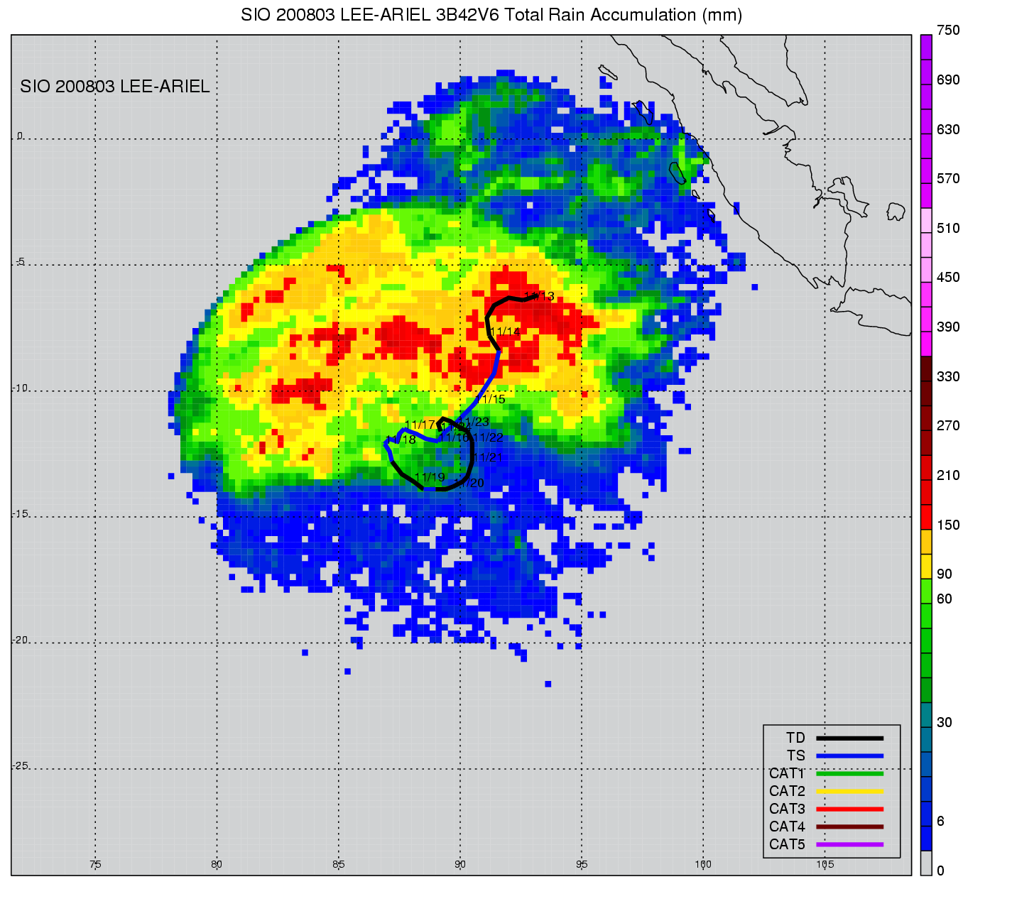 | 14 | 200803 | LEE-ARIEL | 20071112 - 20071123 | 978 | 60 | 20 | 158 | snapshots | rain accumulation |