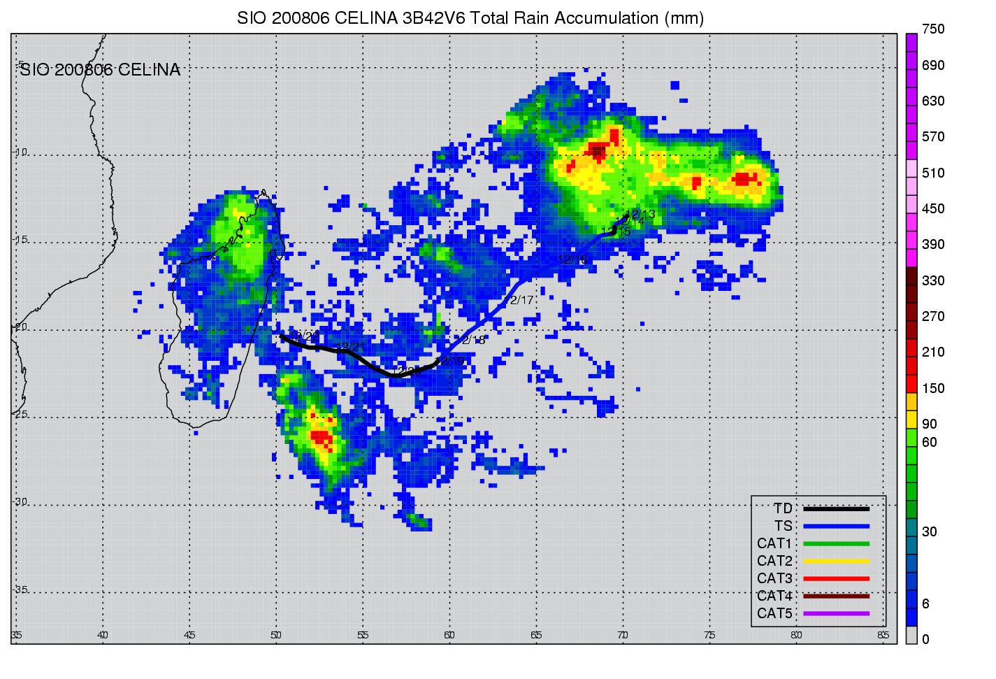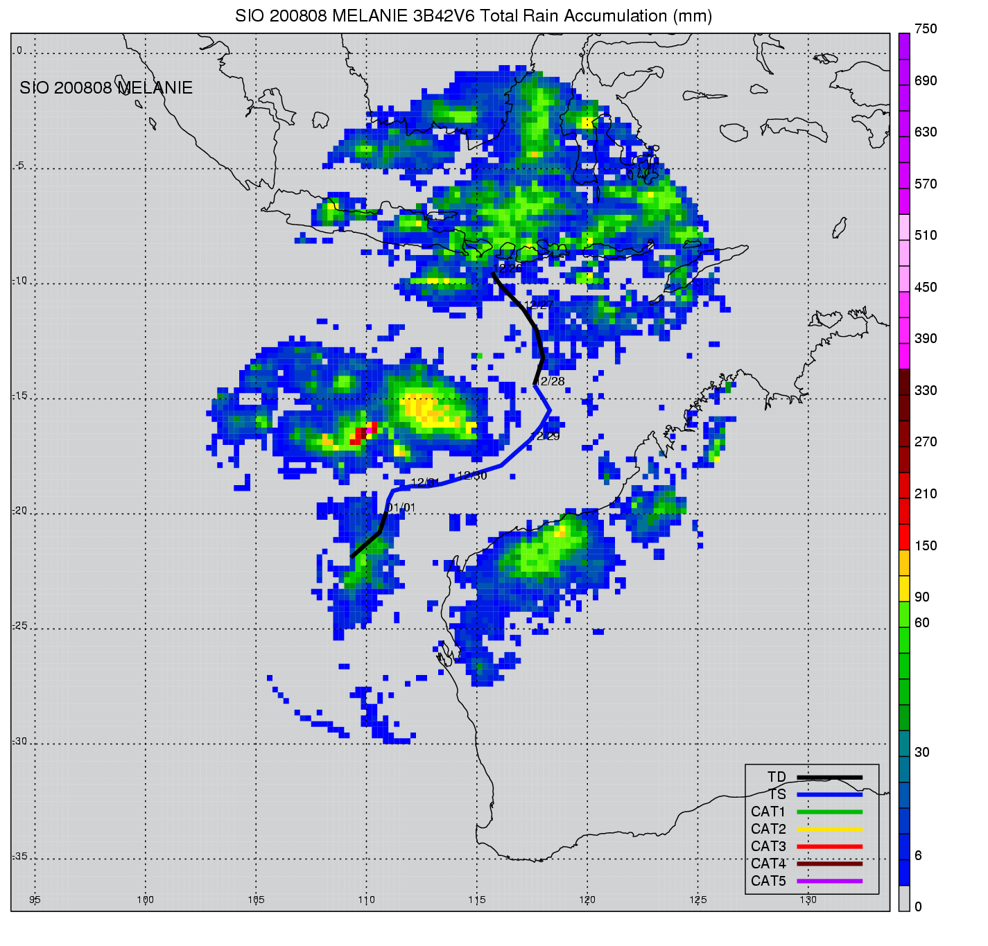 | 18 | 200808 | MELANIE | 20071226 - 20071231 | 978 | 60 | 10 | 75 | snapshots | rain accumulation |