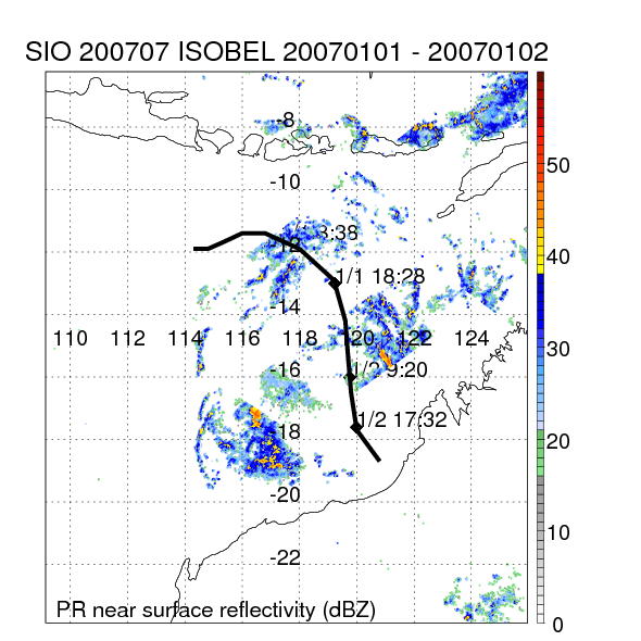 | 2 | 200707 | ISOBEL | 20070101 - 20070102 | 994 | 40 | 4 | 44 | snapshots | rain accumulation |