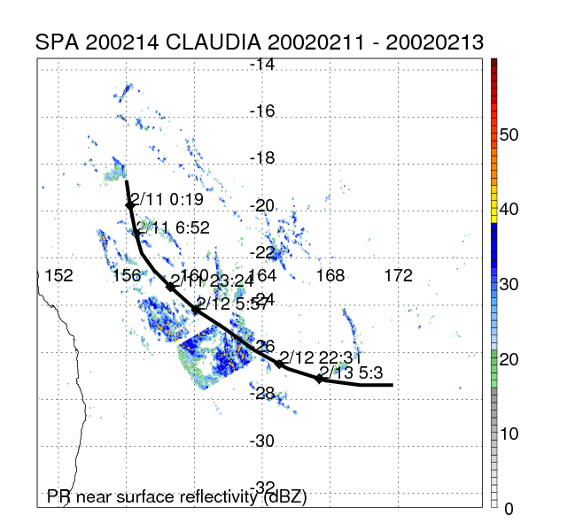 | 3 | 200214 | CLAUDIA | 20020211 - 20020213 | 967 | 75 | 7 | 33 | snapshots | rain accumulation |