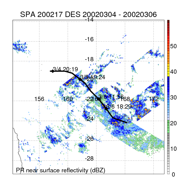 | 5 | 200217 | DES | 20020304 - 20020306 | 987 | 50 | 5 | 26 | snapshots | rain accumulation |