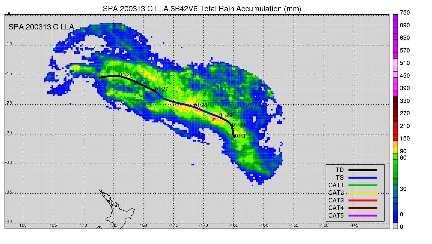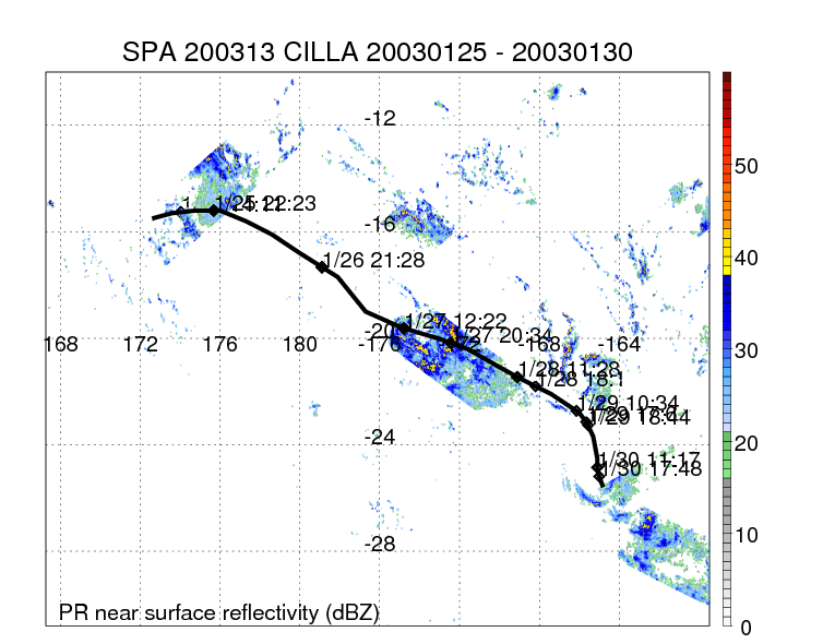 | 4 | 200313 | CILLA | 20030125 - 20030130 | 997 | 35 | 13 | 75 | snapshots | rain accumulation |