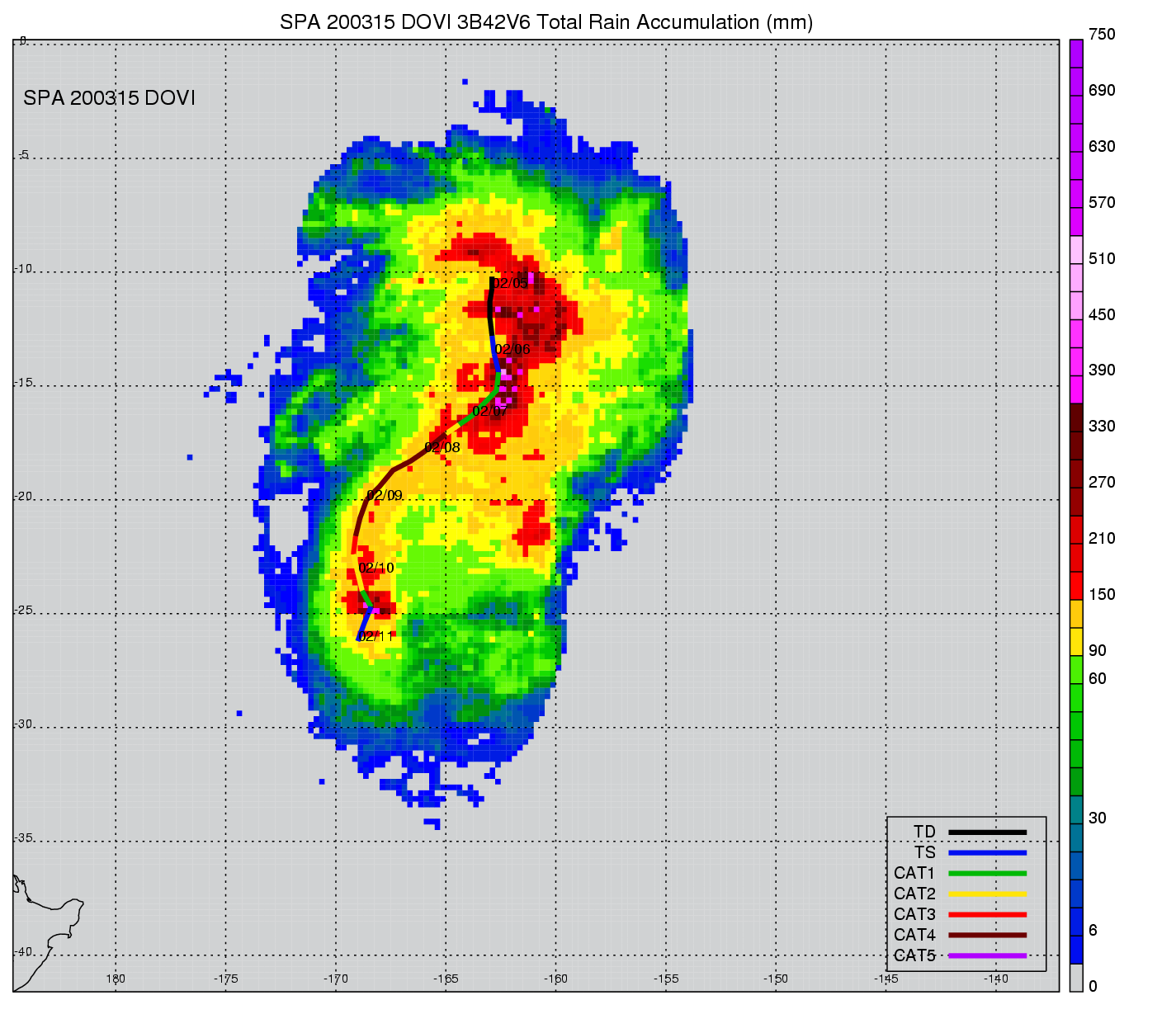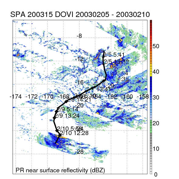 | 5 | 200315 | DOVI | 20030205 - 20030210 | 910 | 130 | 12 | 111 | snapshots | rain accumulation |