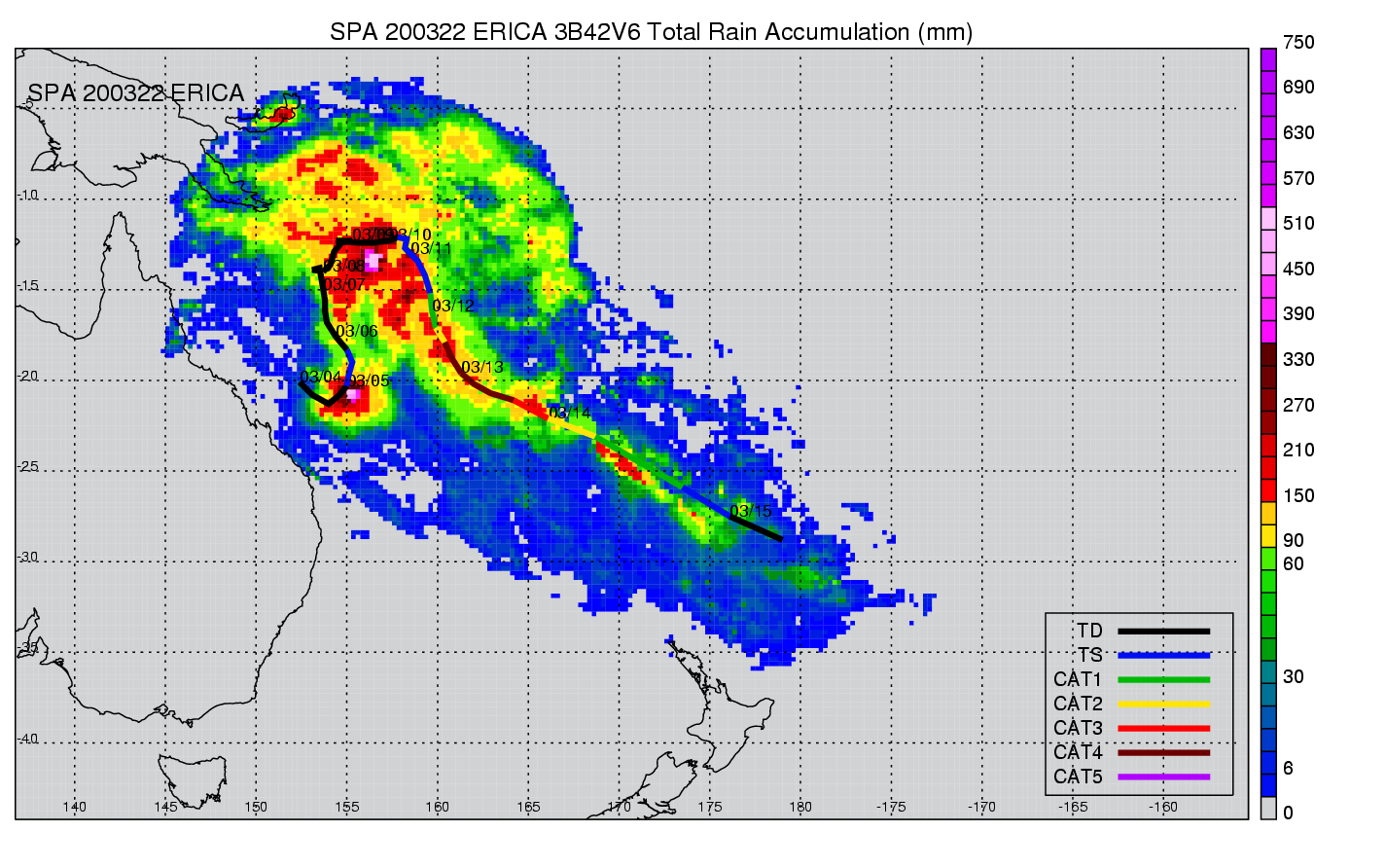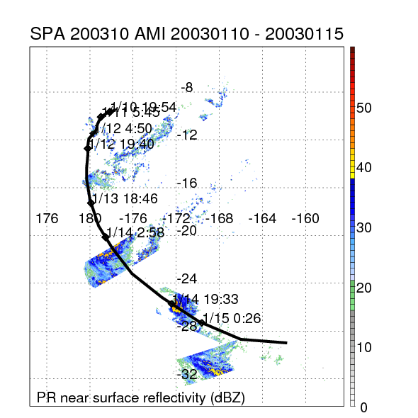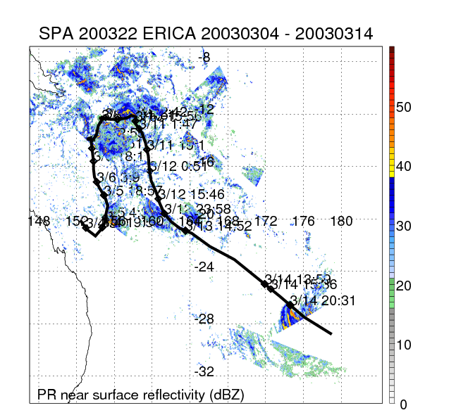 | 6 | 200322 | ERICA | 20030304 - 20030314 | 910 | 130 | 23 | 160 | snapshots | rain accumulation |