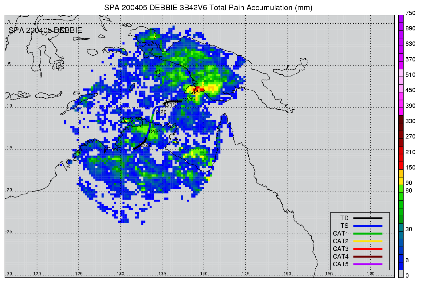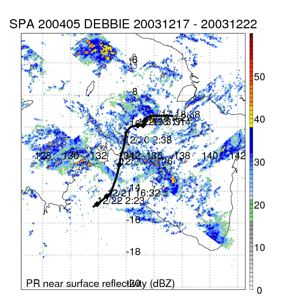 | 10 | 200405 | DEBBIE | 20031217 - 20031222 | 976 | 65 | 8 | 82 | snapshots | rain accumulation |