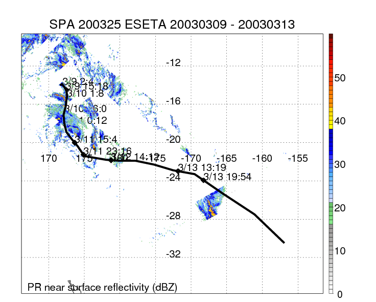 | 7 | 200325 | ESETA | 20030309 - 20030313 | 952 | 110 | 10 | 36 | snapshots | rain accumulation |