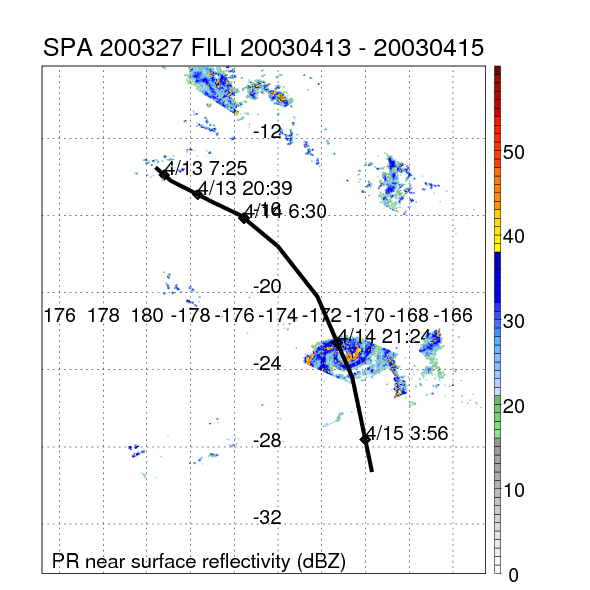 | 8 | 200327 | FILI | 20030413 - 20030415 | 997 | 45 | 5 | 15 | snapshots | rain accumulation |