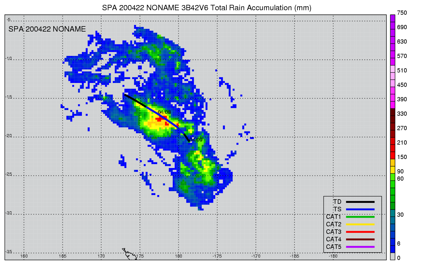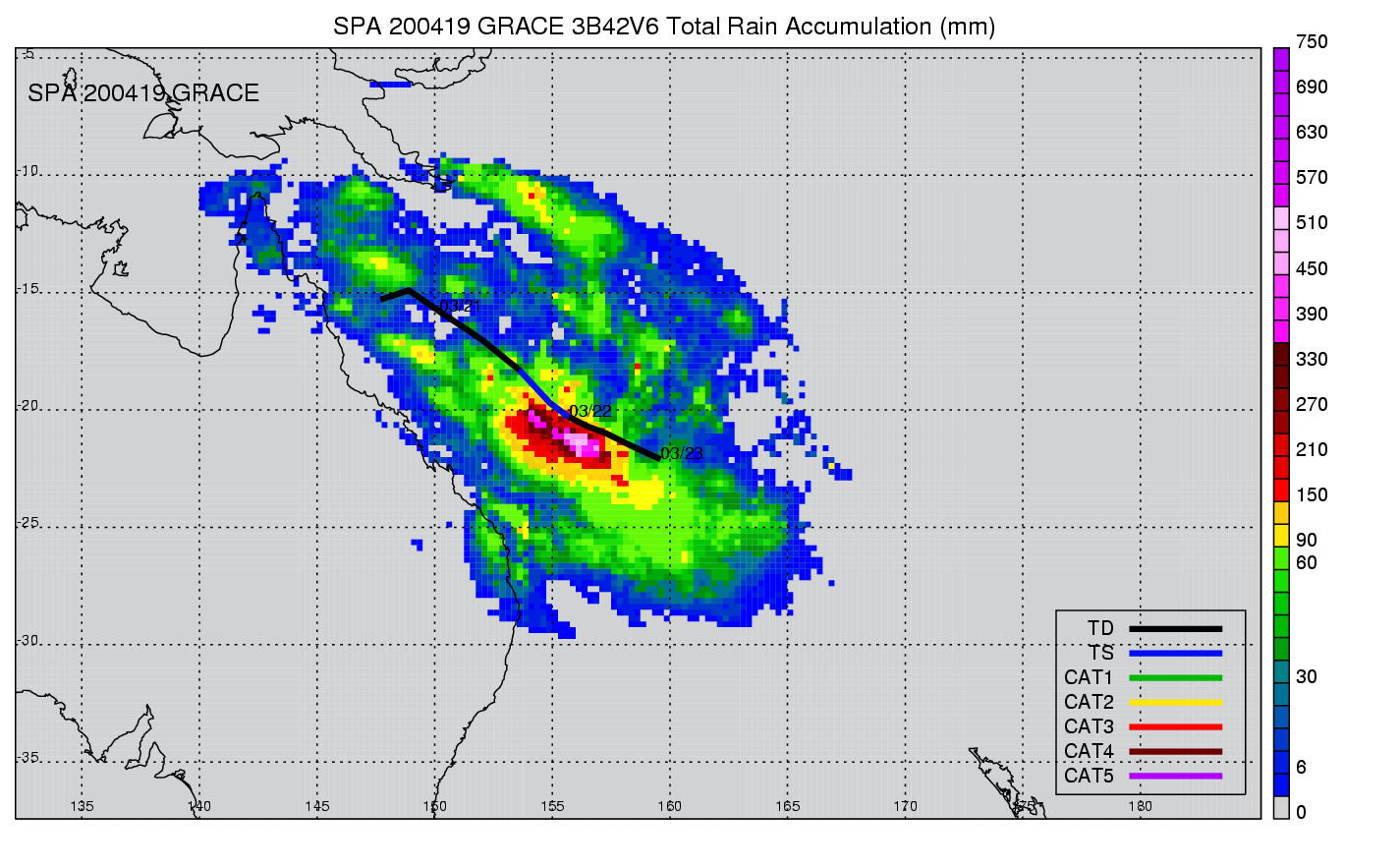 | 4 | 200419 | GRACE | 20040320 - 20040322 | 997 | 35 | 5 | 41 | snapshots | rain accumulation |