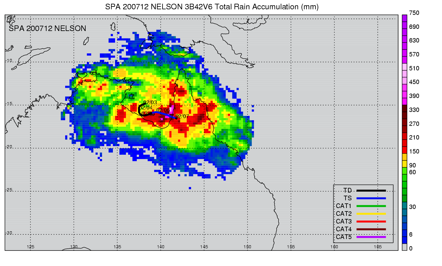 | 4 | 200712 | NELSON | 20070203 - 20070206 | 987 | 50 | 9 | 55 | snapshots | rain accumulation |
