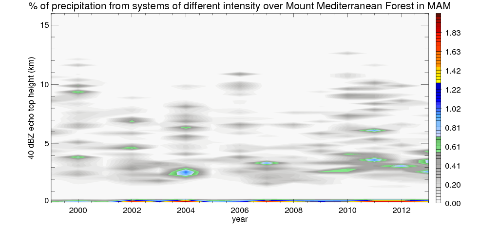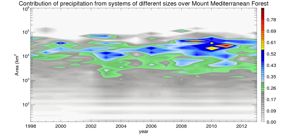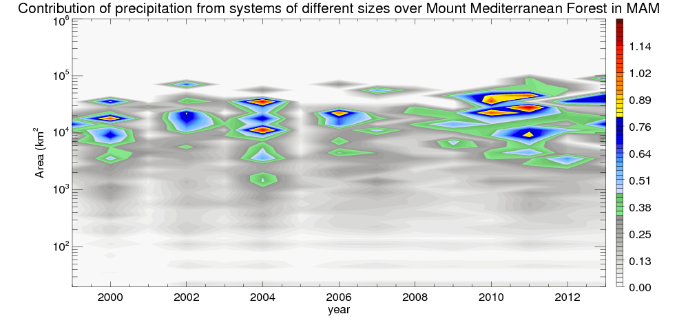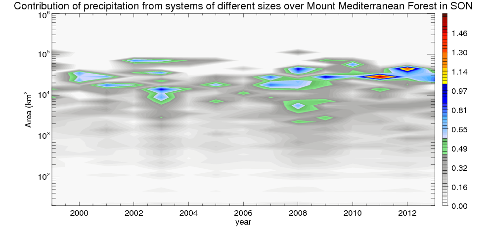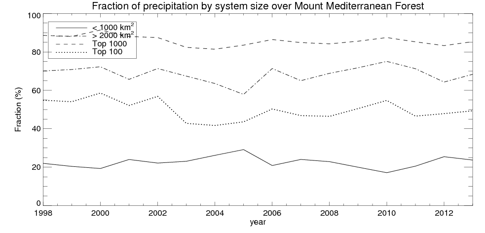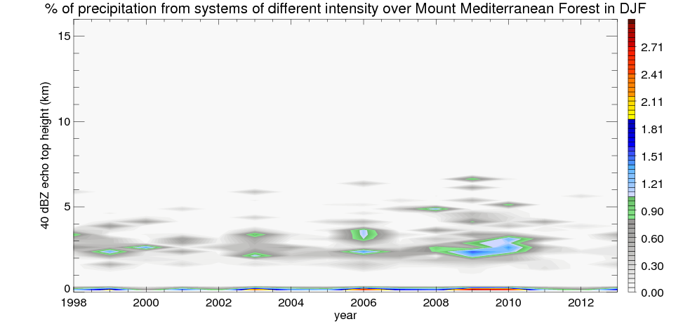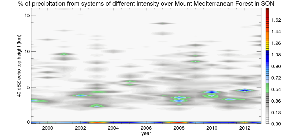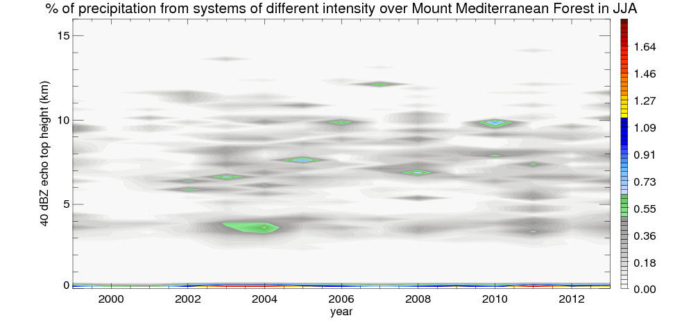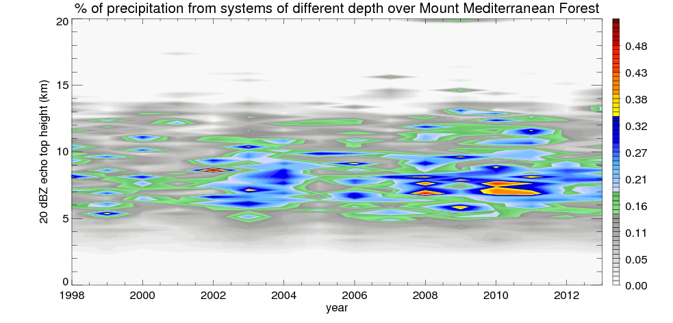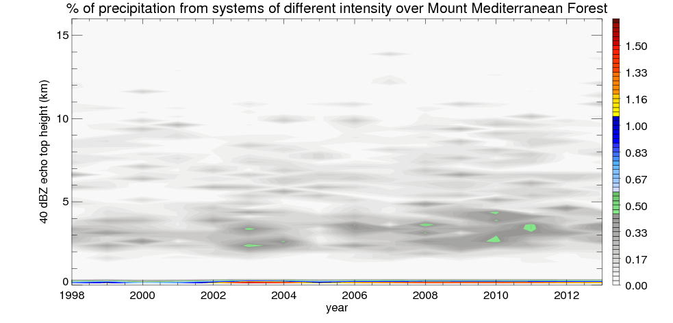 Time variation of precipitation systems over Mount_Mediterranean_Forest