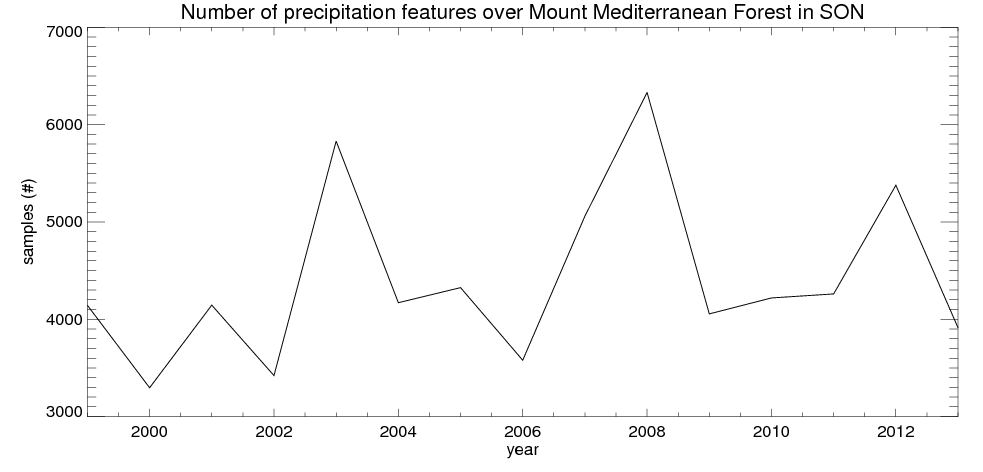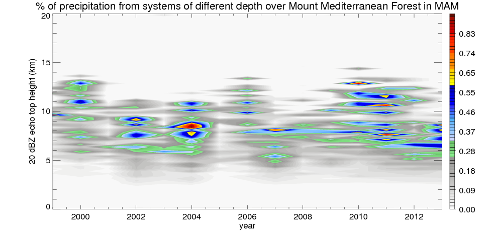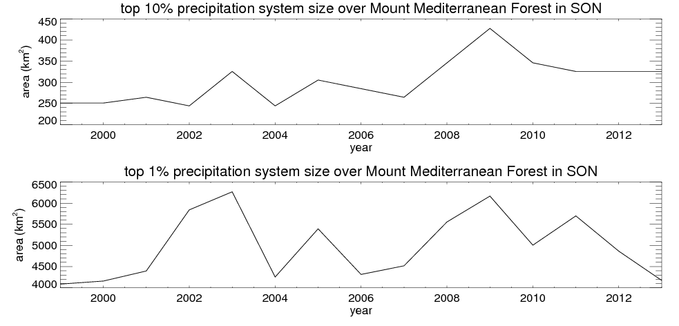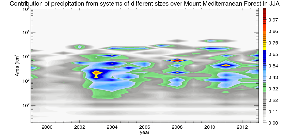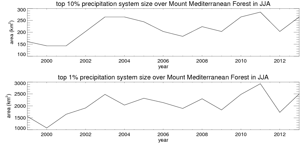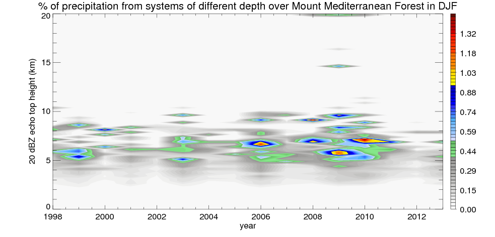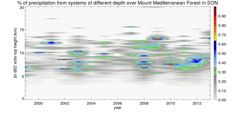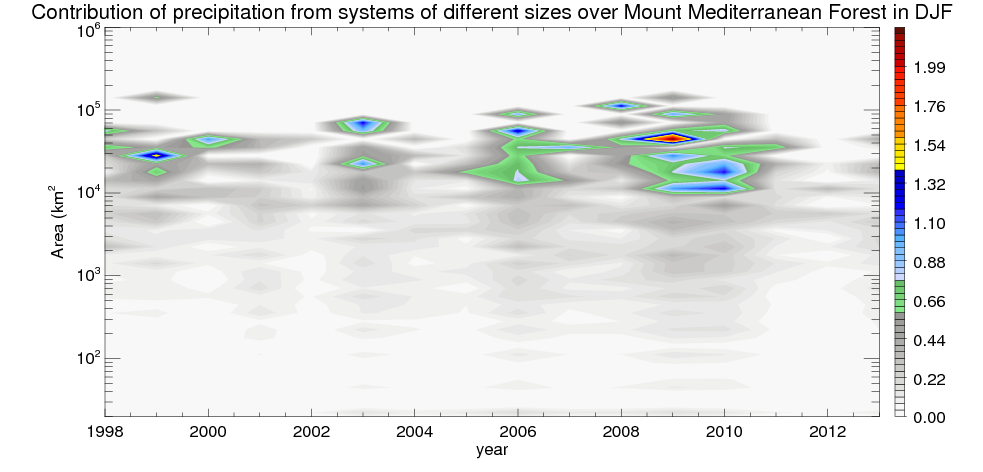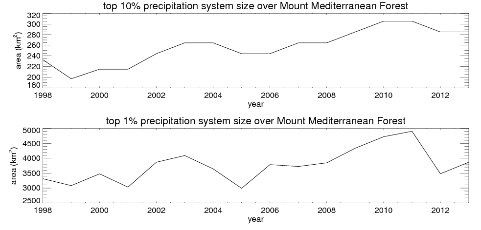 Time variation of precipitation systems over Mount_Mediterranean_Forest