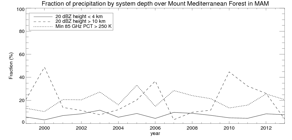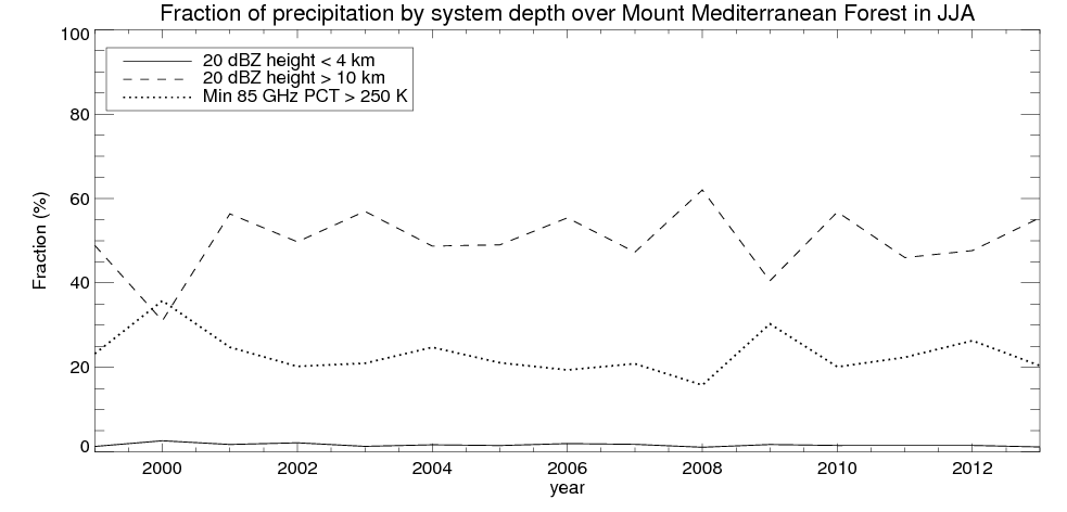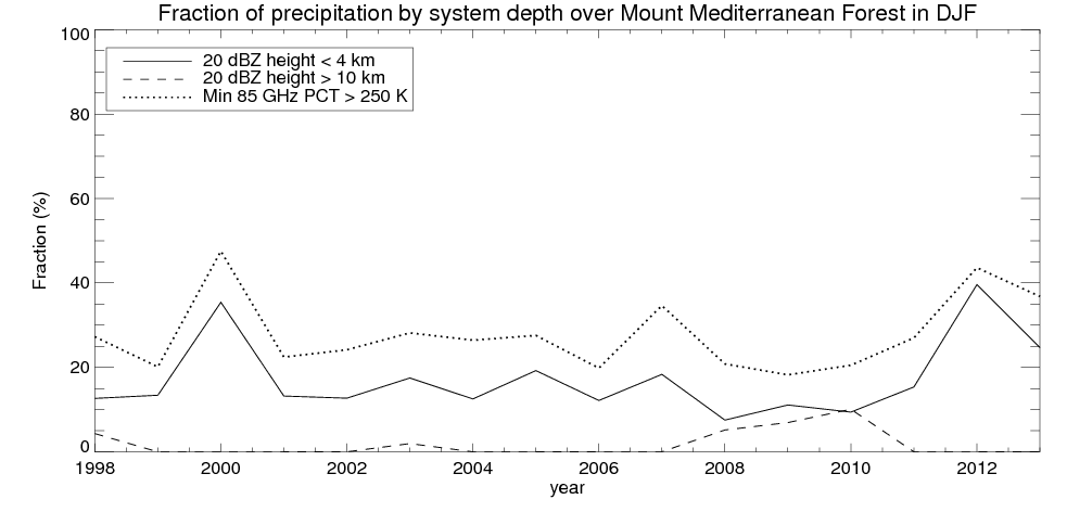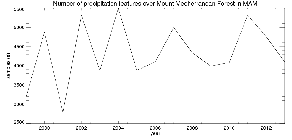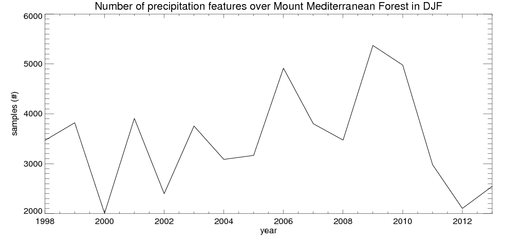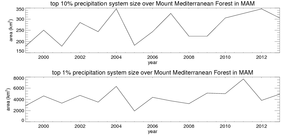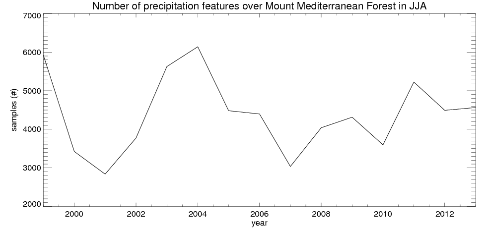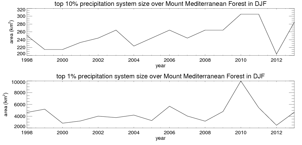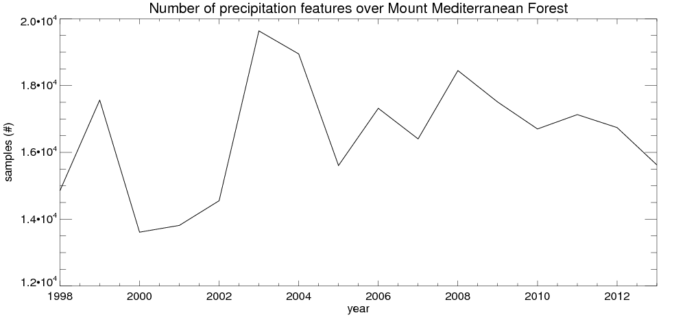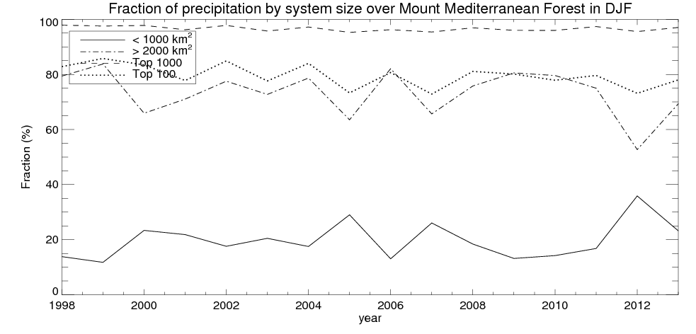 Time variation of precipitation systems over Mount_Mediterranean_Forest