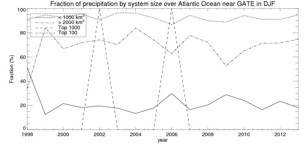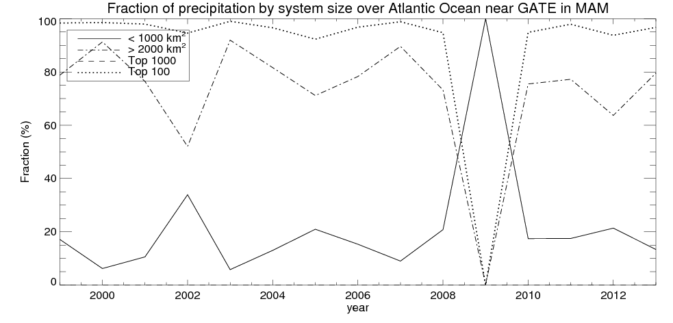 Precipitation fraciton by system size