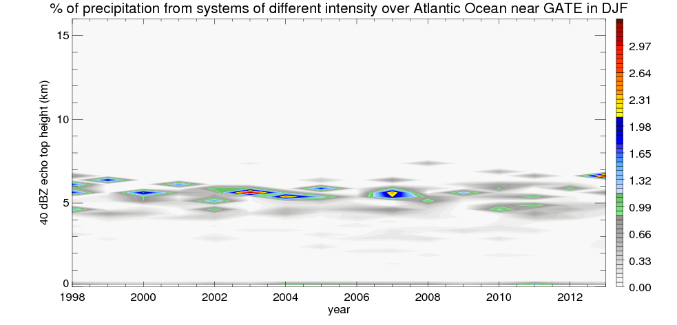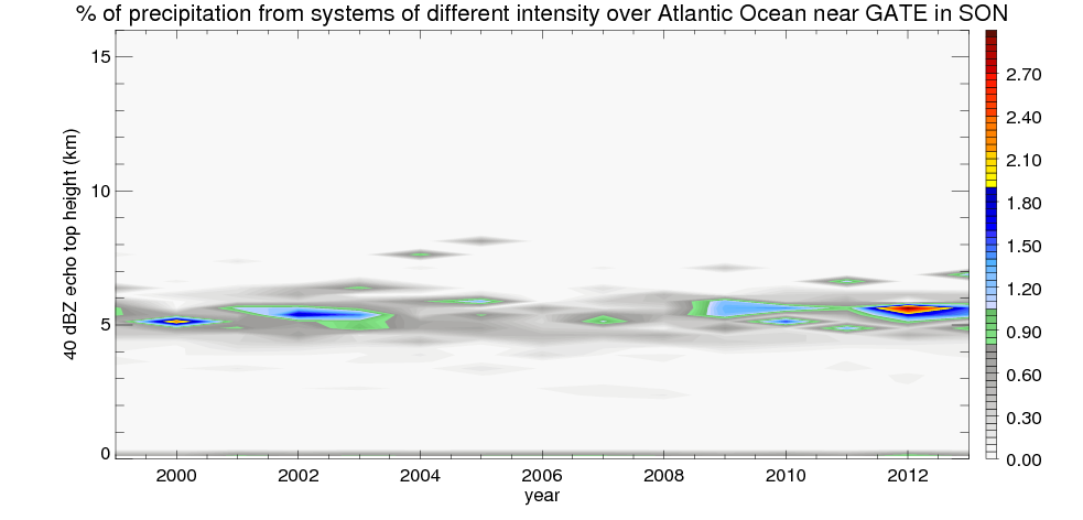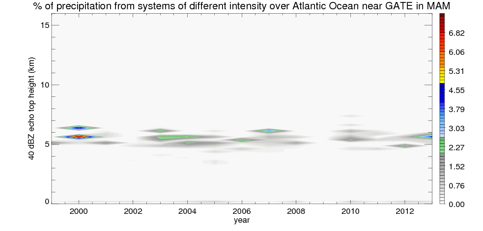 Precipitation by 40 dBZ echo top height