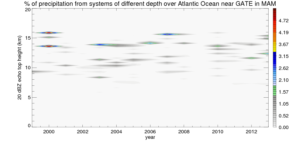Precipitation by 20 dBZ echo top height spectrum
