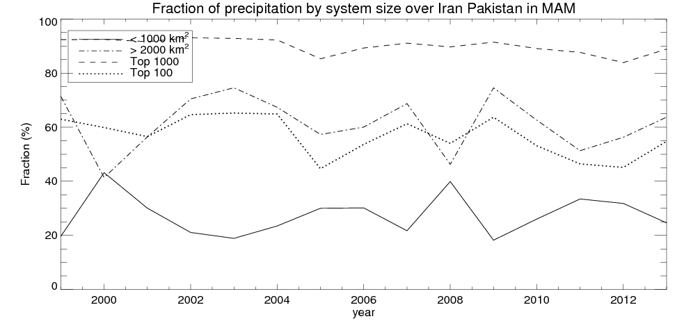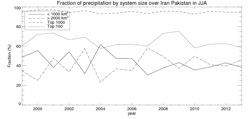 Precipitation fraciton by system size
