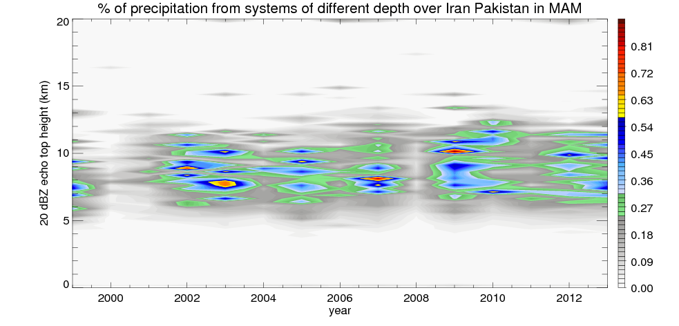 Precipitation by 20 dBZ echo top height spectrum