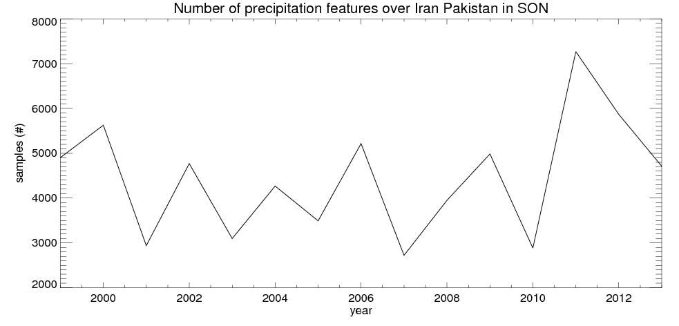 Number of precipitation features (samples)