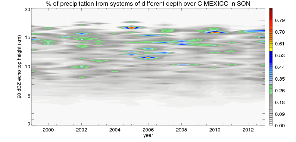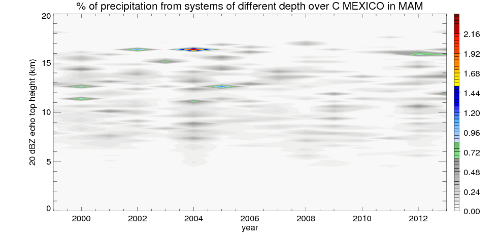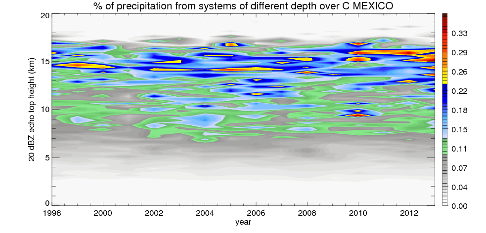 Precipitation by 20 dBZ echo top height spectrum