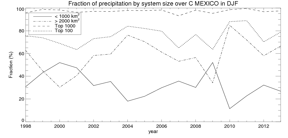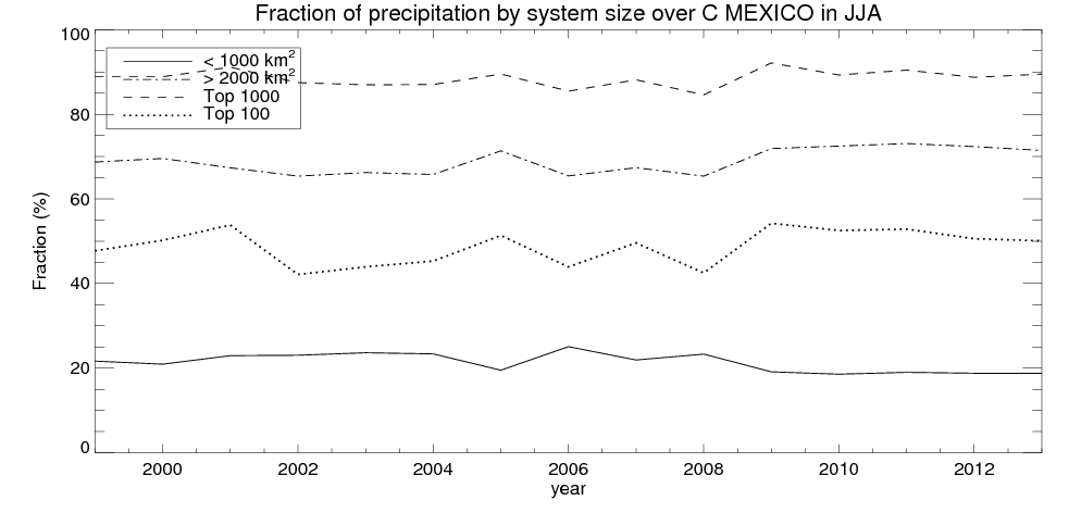 Precipitation fraciton by system size
