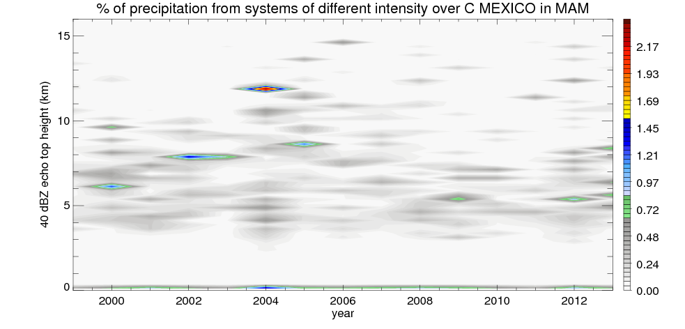Time variation of precipitation systems over C_MEXICO