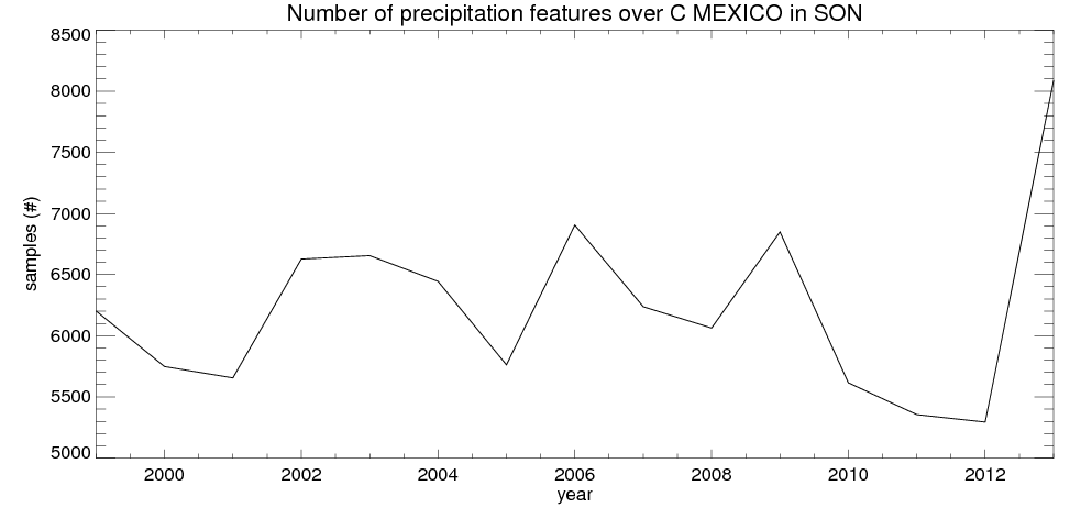 Number of precipitation features (samples)