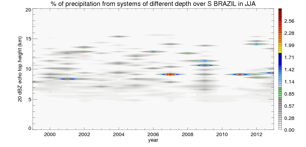 Precipitation by 20 dBZ echo top height spectrum
