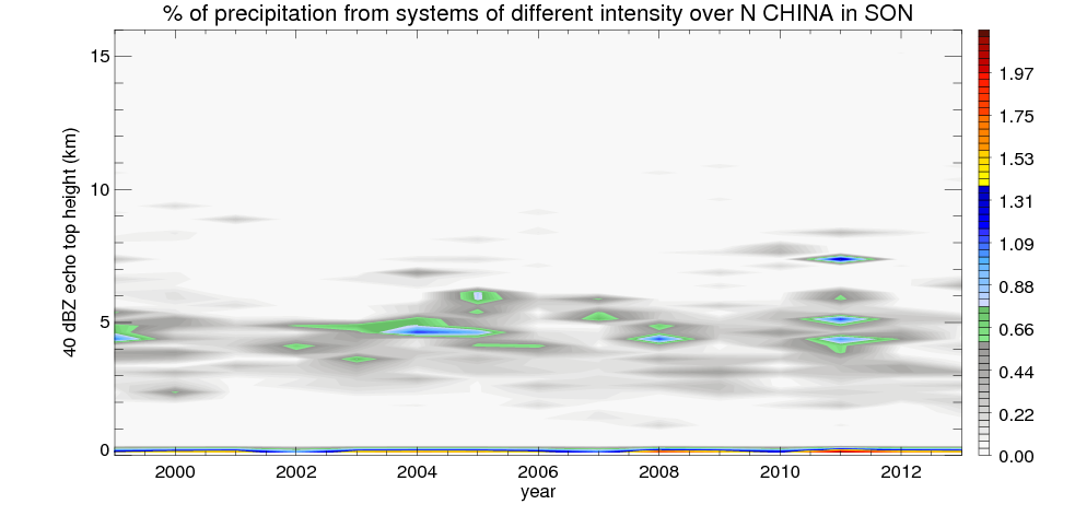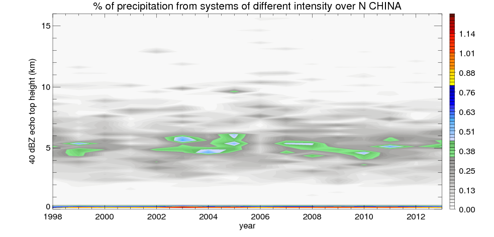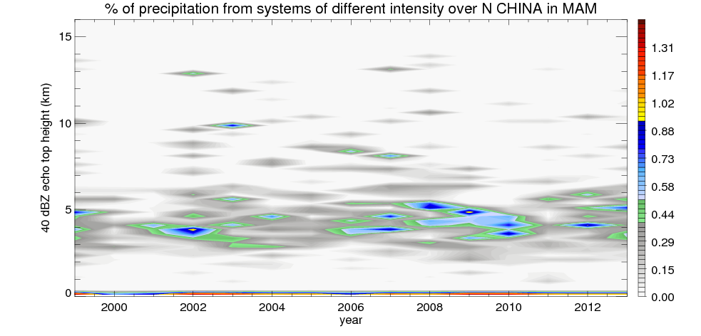 Precipitation by 40 dBZ echo top height