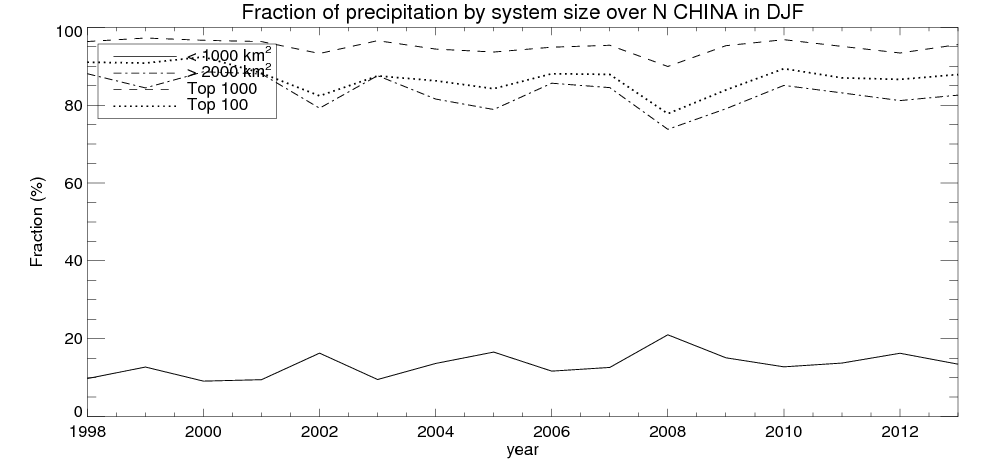 Precipitation fraciton by system size
