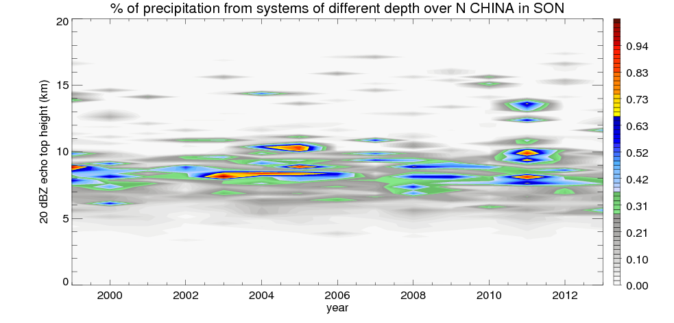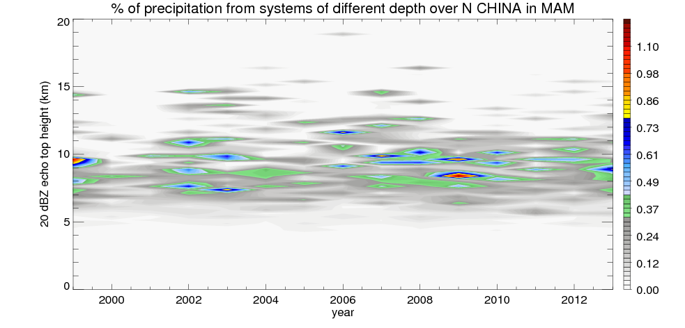 Precipitation by 20 dBZ echo top height spectrum