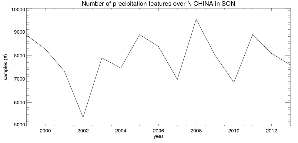Number of precipitation features (samples)