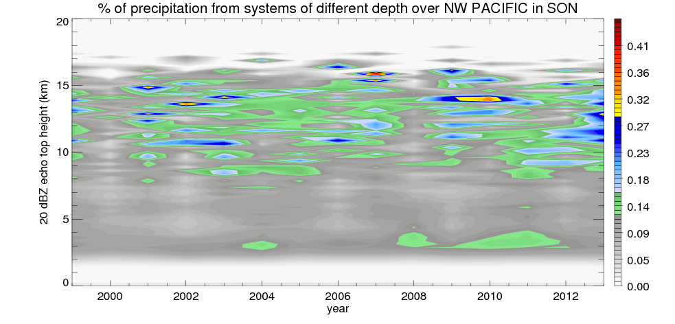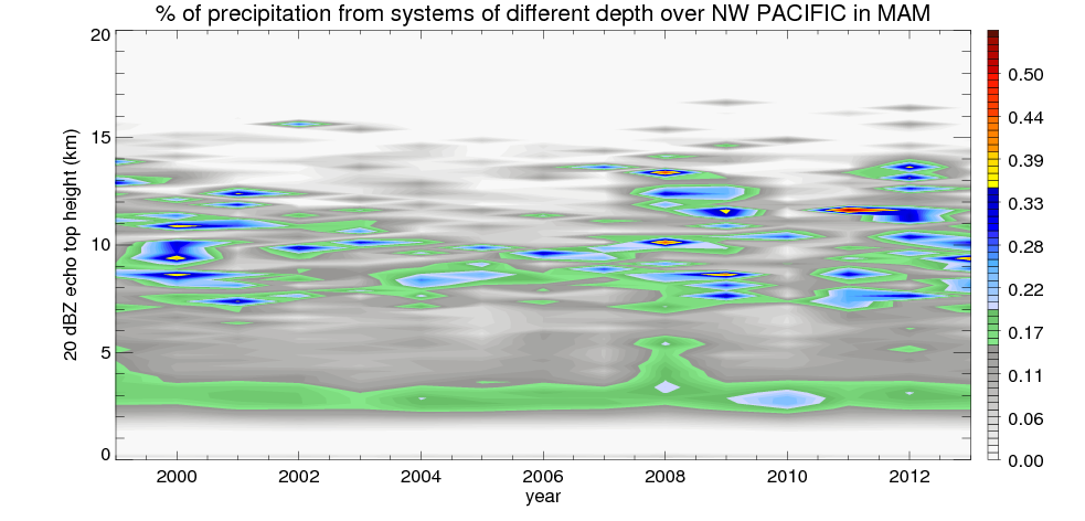 Precipitation by 20 dBZ echo top height spectrum