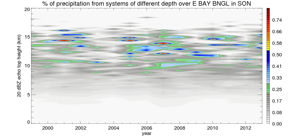 Time variation of precipitation systems over E_BAY_BNGL