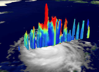 Tower Clouds are associated with strong updrafts very deep convection. The term "hot tower" is often used.? Not all very deep cloud towers are associated with equally intense convection; those over land are generally more intense than those over oceans. Because sometimes they can reach up to 16-18 km, well above the tropical tropopause, it is believed that they may play an important role in the troposphere and stratosphere exchange (Sherwood and Dessler, 2000; Dessler 2002). Literature also suggests that the appearance of these tower clouds in a tropical cyclone may be correlated with their intensification ( Kelley et al. 2004; Kelley et al. 2005). The TRMM PR can detect the vertical reflectivity structure of these systems and shows the domination of the Tower Clouds overshooting the tropical tropopause over Africa (Liu and Zipser 2005). Here we define and rank the tower clouds by using the area of PR 20 dBZ at 14 km within a precipitation system.